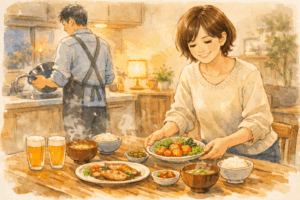 忙しく帰宅すると温かい食事が用意されていること。